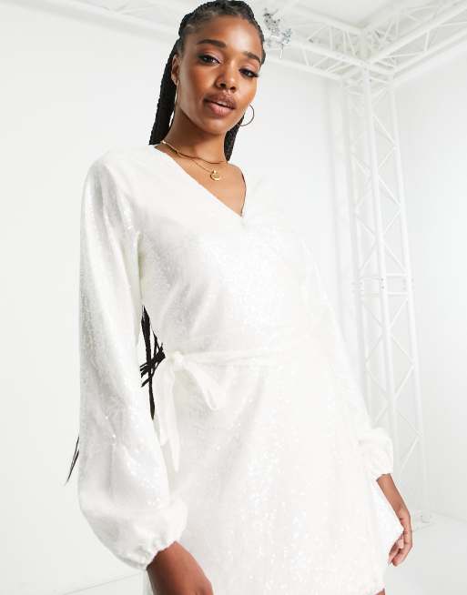 Esclusiva In The Style Tall Vestito corto avvolgente bianco inverno con paillettes Very well made.
