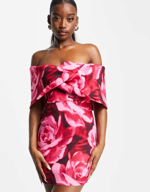 ASOS DESIGN Vestito corto con scollo alla Bardot a cuore e stampa di rose Very well made.