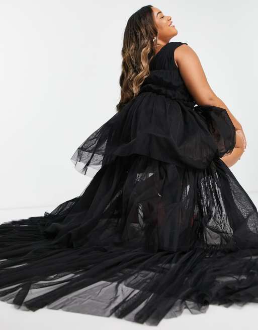 Lace Beads Plus Vestito corto in tulle nero a balze con gonna asimmetrica e scollo profondo Very well made.