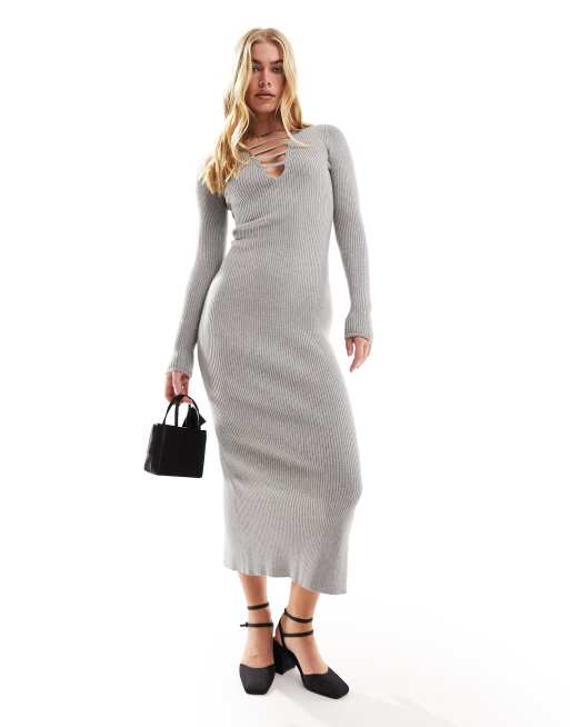 Bershka Vestito lungo grigio in maglia con fascette incrociate Very well made.