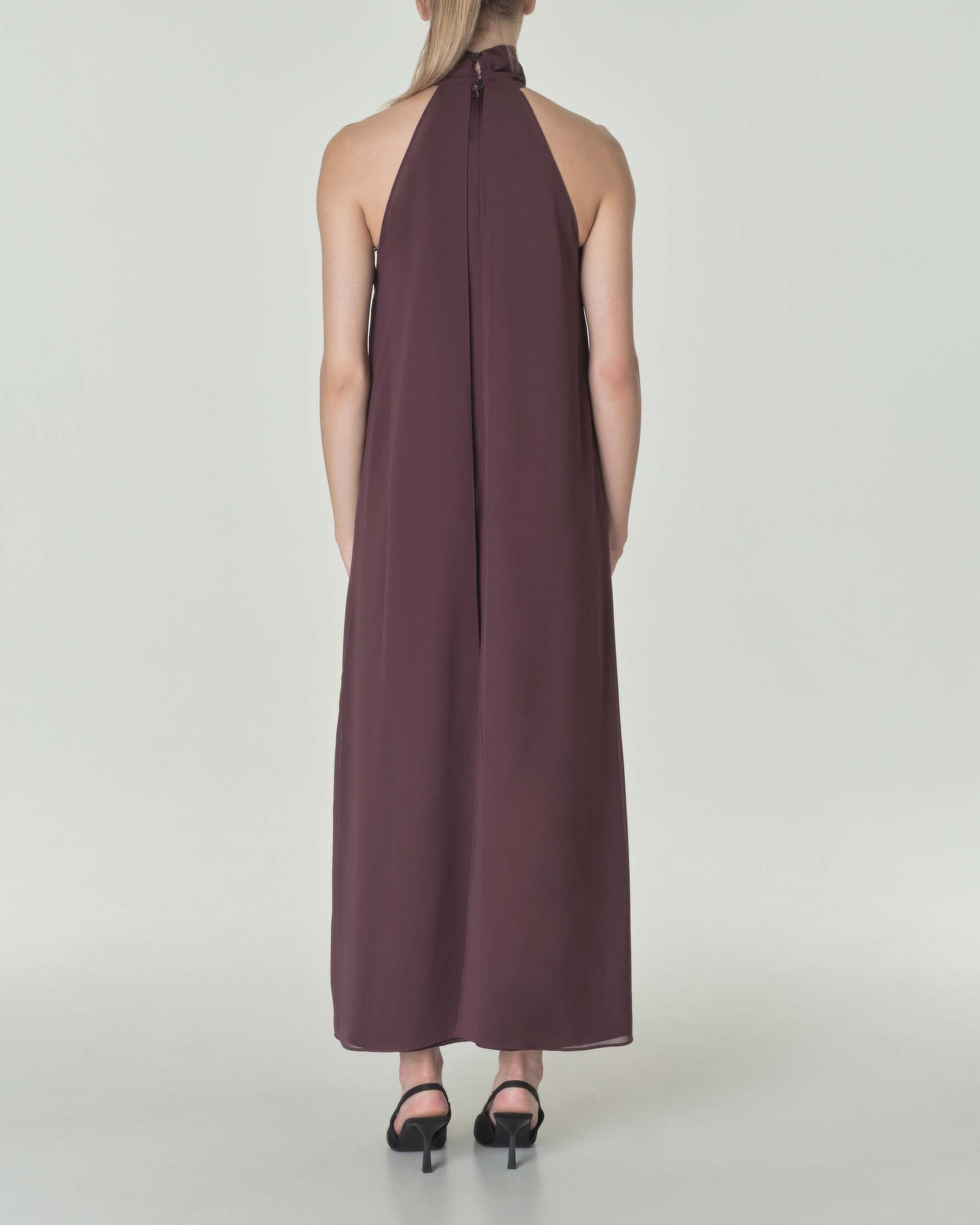 Abito lungo bordeaux in georgette con scollo all americana e Very well made.