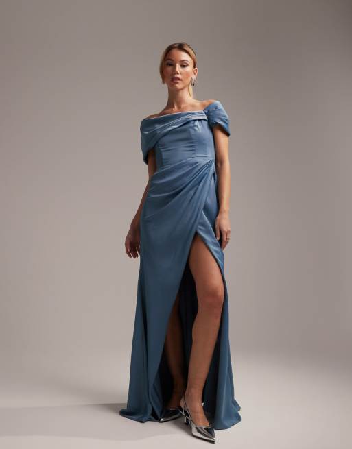 ASOS DESIGN Vestito lungo da damigella a portafoglio in raso blu Very well made.
