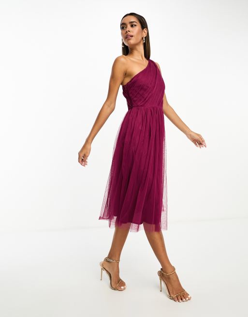 Anaya Bridesmaid tulle one shoulder midi dress in berry Very well made.