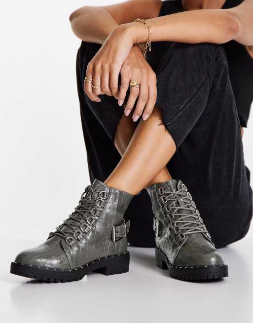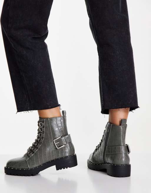 ASOS DESIGN Aura lace up hiker boots in grey croc ASOS Very well made.