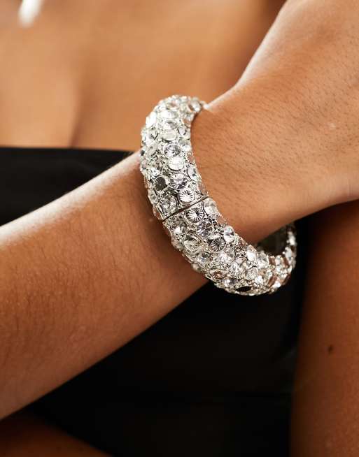 ASOS DESIGN bangle bracelet with all over crystal design in silver Very well made.