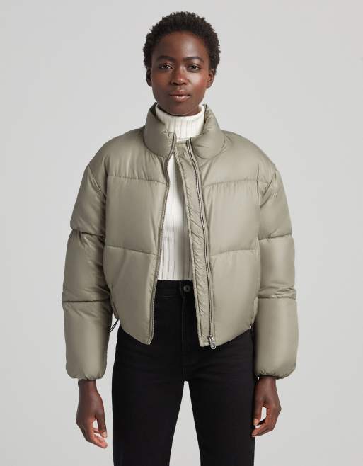 Bershka nylon cropped puffer jacket in khaki ASOS Very well made.