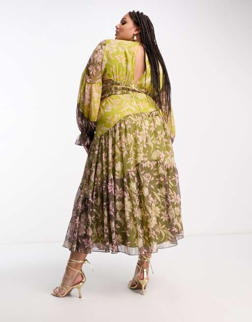 ASOS DESIGN Curve ruched waist detail midi dress with blouson sleeve in mixed floral Very well made.