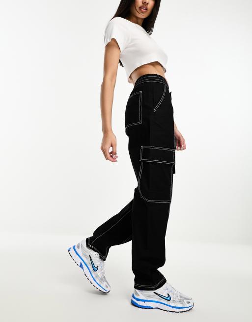 ASOS DESIGN seam detail cargo pants in black with contrast stitch Very well made.