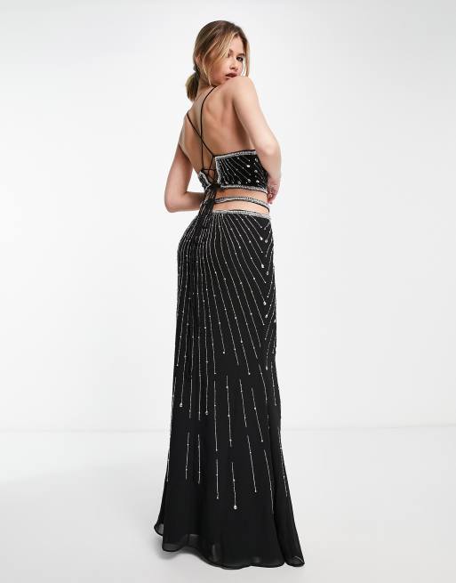 ASOS DESIGN strappy maxi dress with pearl and linear embellishment Very well made.