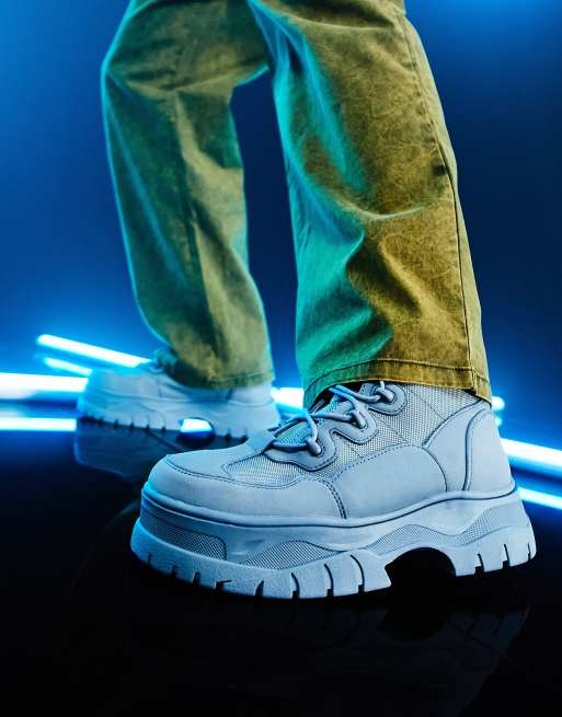 ASOS DESIGN lace up boots in blue faux suede on chunky sole ASOS Very well made.