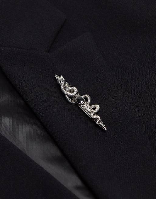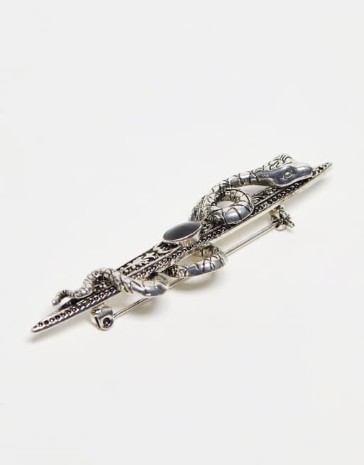 ASOS DESIGN brooch with snake detail and black stone in silver Very well made.