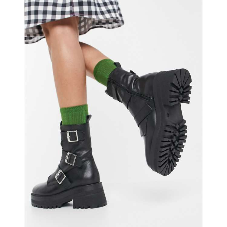ASOS DESIGN Alex premium leather chunky buckle boots in black ASOS Very well made.