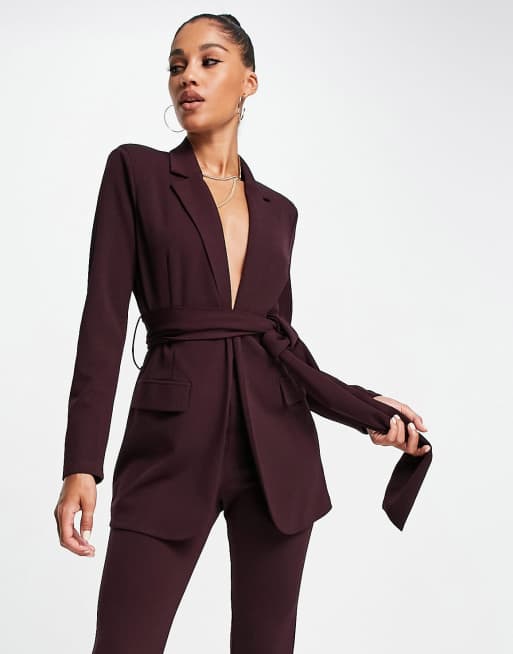ASOS DESIGN jersey suit blazer with obi tie waist in wine ASOS Very well made.