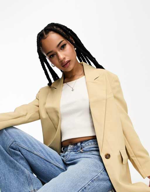ASOS DESIGN Petite long line perfect blazer in stone ASOS Very well made.