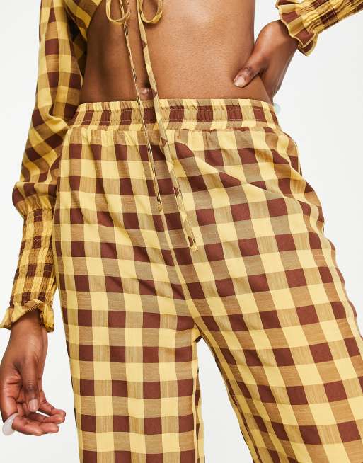 ASOS DESIGN casual flare pants in pink check part of a set Very well made.
