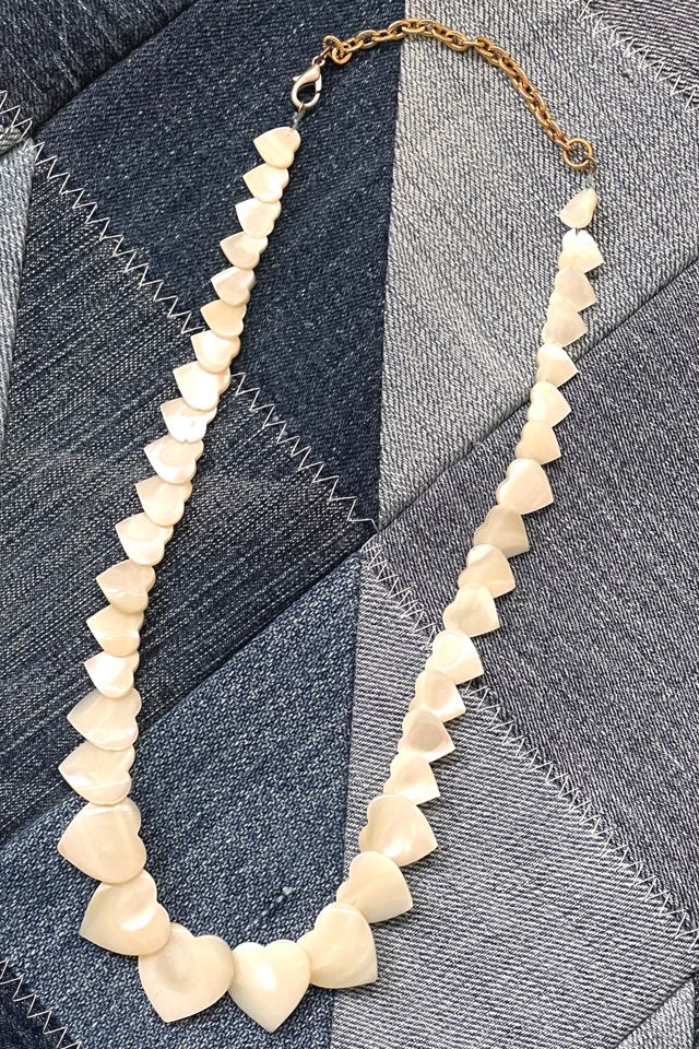 Vintage Hand Carved Mother of Pearl Hearts Necklace Selected by Anna Corinna Very well made.