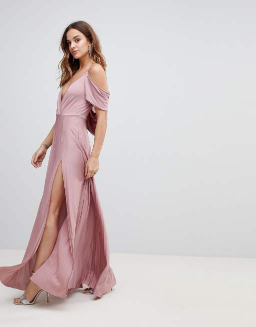 ASOS DESIGN cold shoulder cowl back pleated maxi dress ASOS Very well made.