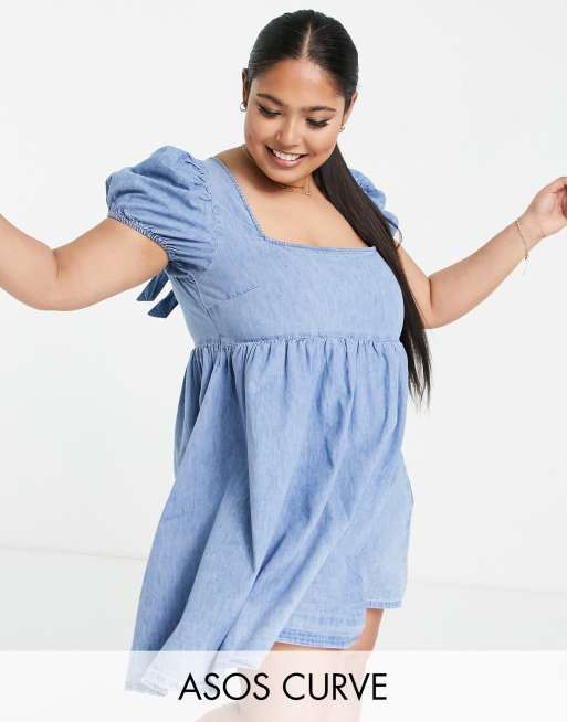 ASOS DESIGN Curve soft denim babydoll dress in midwash ASOS Very well made.