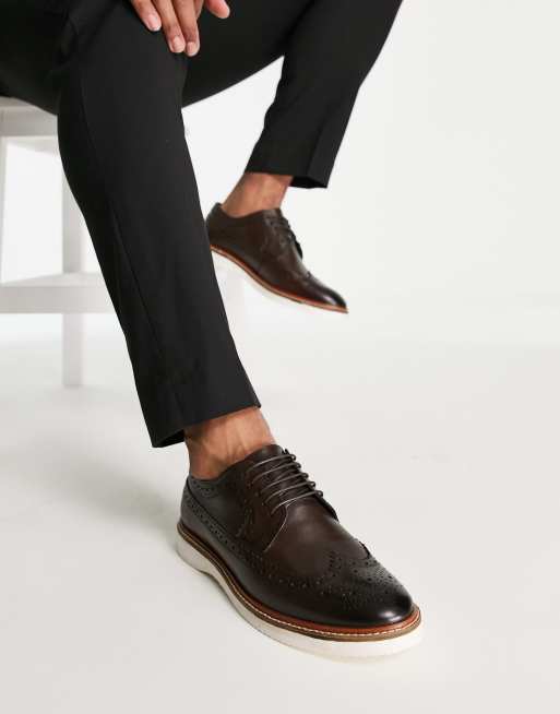 ASOS DESIGN brogue shoe in brown leather on white wedge sole ASOS Very well made.