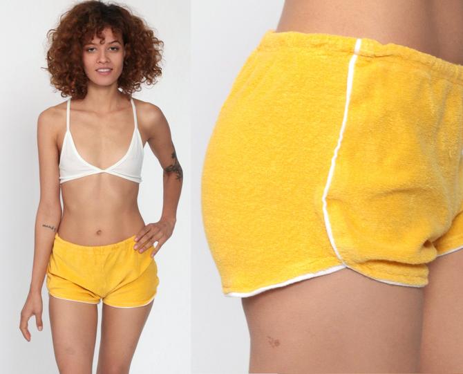 Terry Cloth Shorts 80s Yellow Ringer Shorts Running Shorts Gym Very well made.