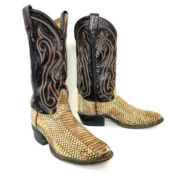 Vintage TONY LAMA Brown Snakeskin Cowboy Boots men s 8 1 2 D Very well made.