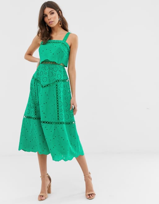 ASOS DESIGN broderie cami midi prom dress with lace inserts ASOS Very well made.