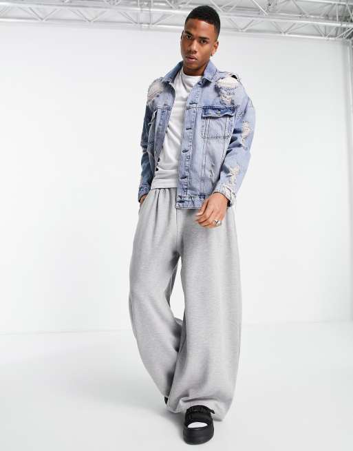 ASOS DESIGN oversized super ripped denim jacket in mid lightwash Very well made.