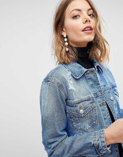 New Look Denim Jacket With Abrasions In Mid Wash Blue ASOS Very well made.