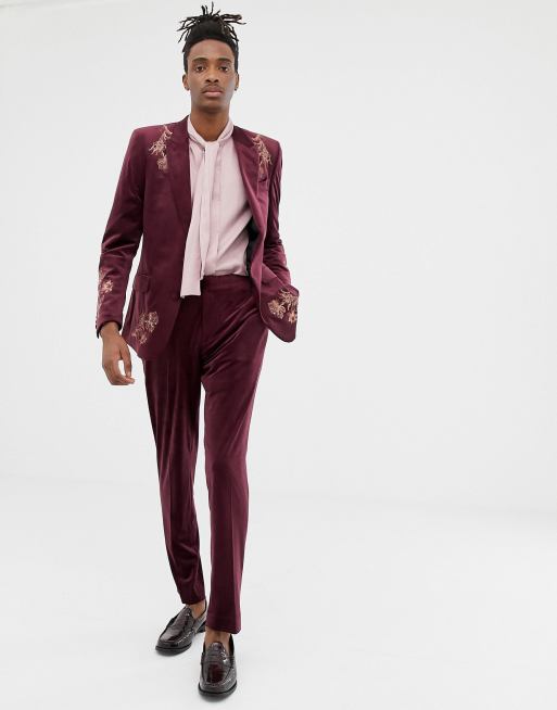ASOS EDITION skinny suit jacket in burgundy embroidered velvet ASOS Very well made.