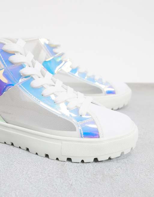 ASOS DESIGN Dazzle high top mesh sneakers in iridescent and white Very well made.