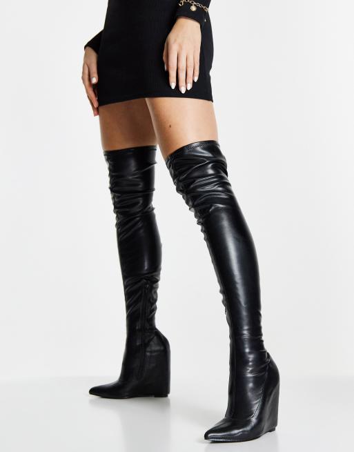 ASOS DESIGN Krissy high heeled over the knee wedges in black pu ASOS Very well made.