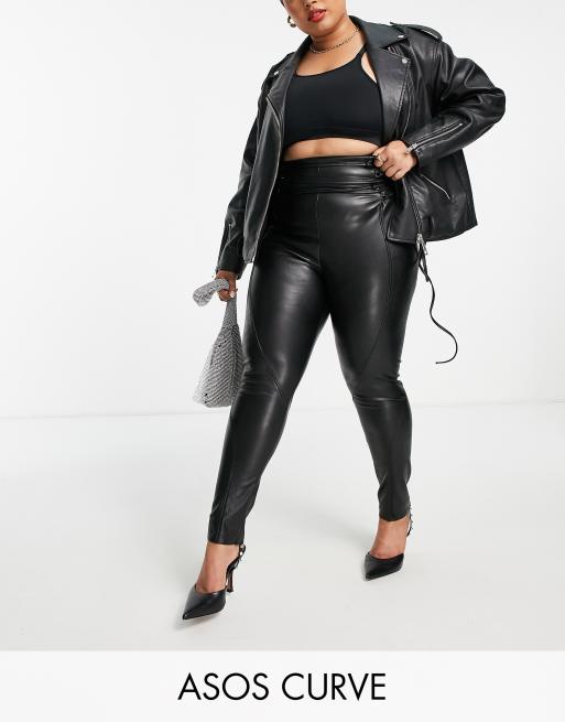 ASOS LUXE Curve leather look leggings with lace up detail in black Very well made.