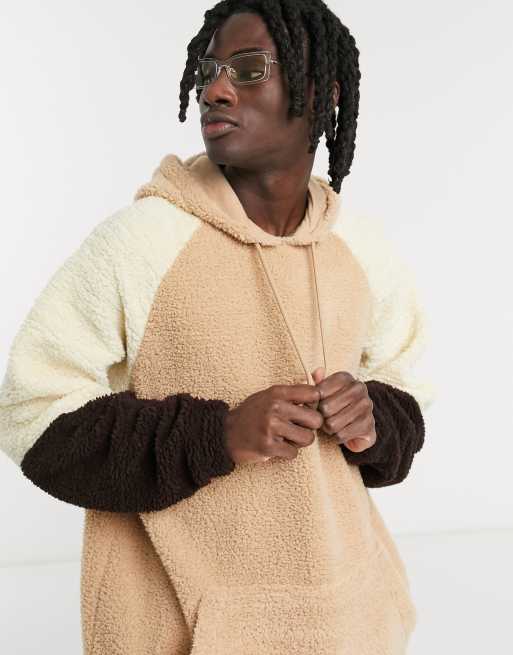 ASOS DESIGN oversized hoodie with colour blocking in brown teddy Very well made.
