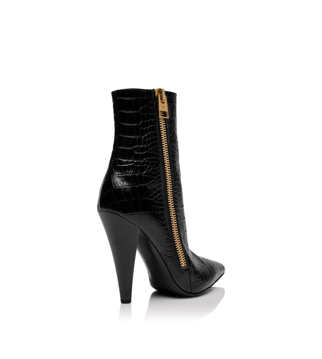 SHINY STAMPED CROCODILE LEATHER ZIP ANKLE BOOT Very well made.