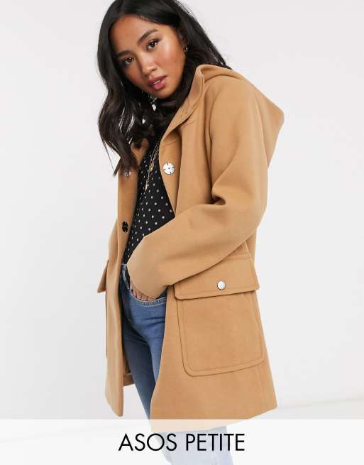ASOS DESIGN Petite Cappotto slim con cappuccio cammello ASOS Very well made.