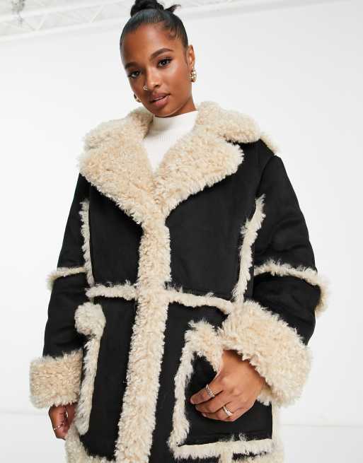 ASOS DESIGN Petite oversized collared coat in faux fur in cream ASOS Very well made.