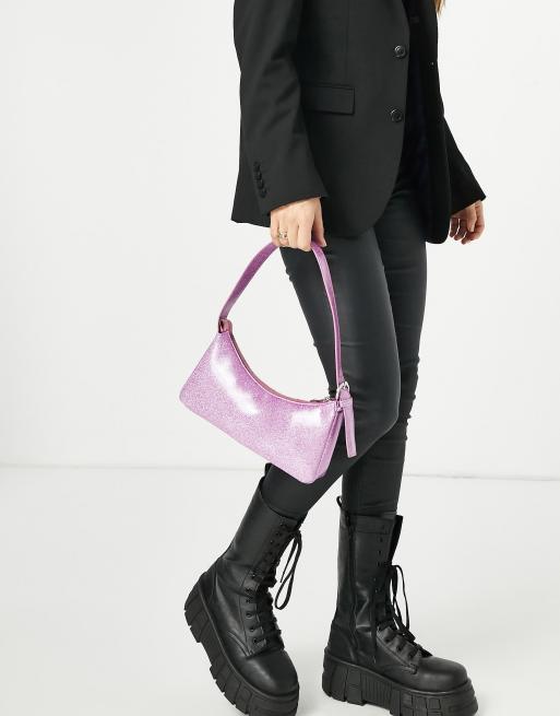 ASOS DESIGN shoulder bag with buckle strap in pink glitter ASOS Very well made.