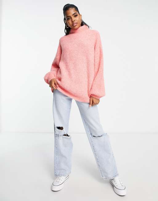 ASOS DESIGN high neck sweater in fluffy yarn in pink ASOS Very well made.