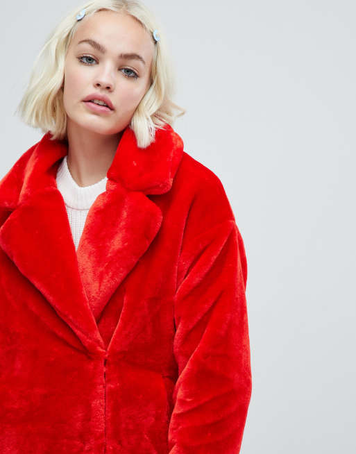 Ever New Petite faux fur belted PU coat in pillarbox red ASOS Very well made.