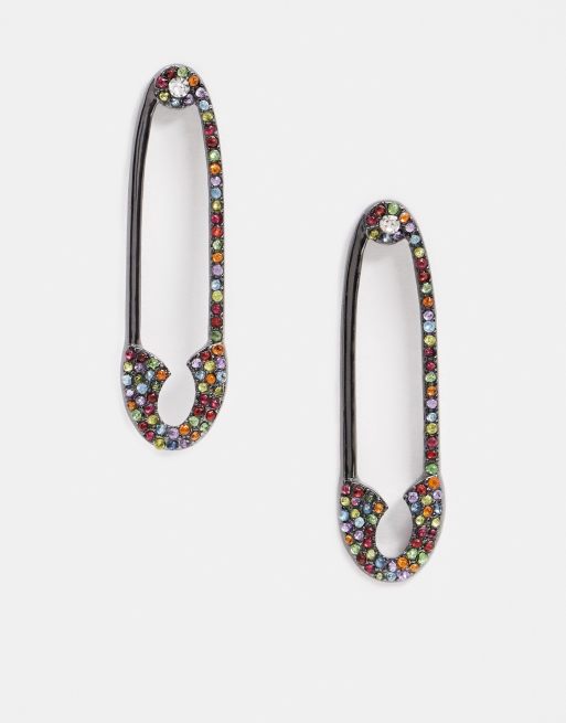 Uncommon Souls earrings in safety pin design with rainbow diamante Very well made.