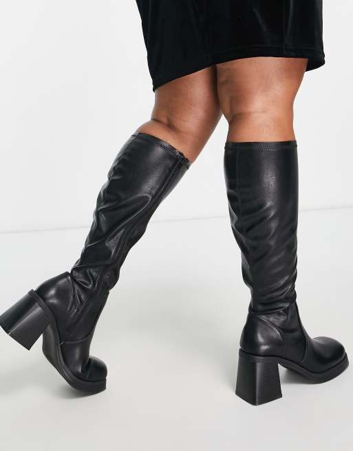 ASOS DESIGN Curve Catch Kniehohe Sock Boot Stiefel in Schwarz Very well made.