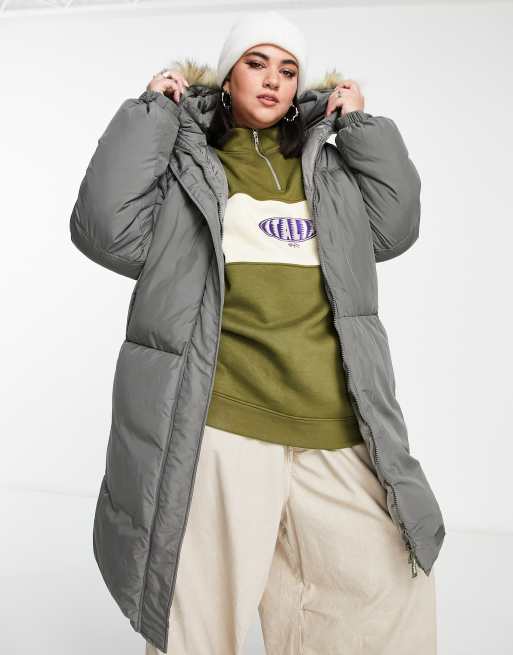 Sixth June Plus oversized hooded puffer parka coat in gray khaki Very well made.