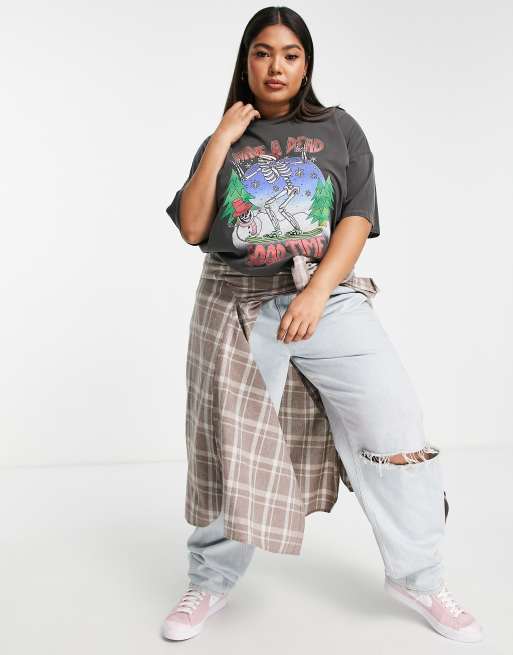 ASOS DESIGN Curve Christmas snowboarding skeleton graphic tshirt Very well made.