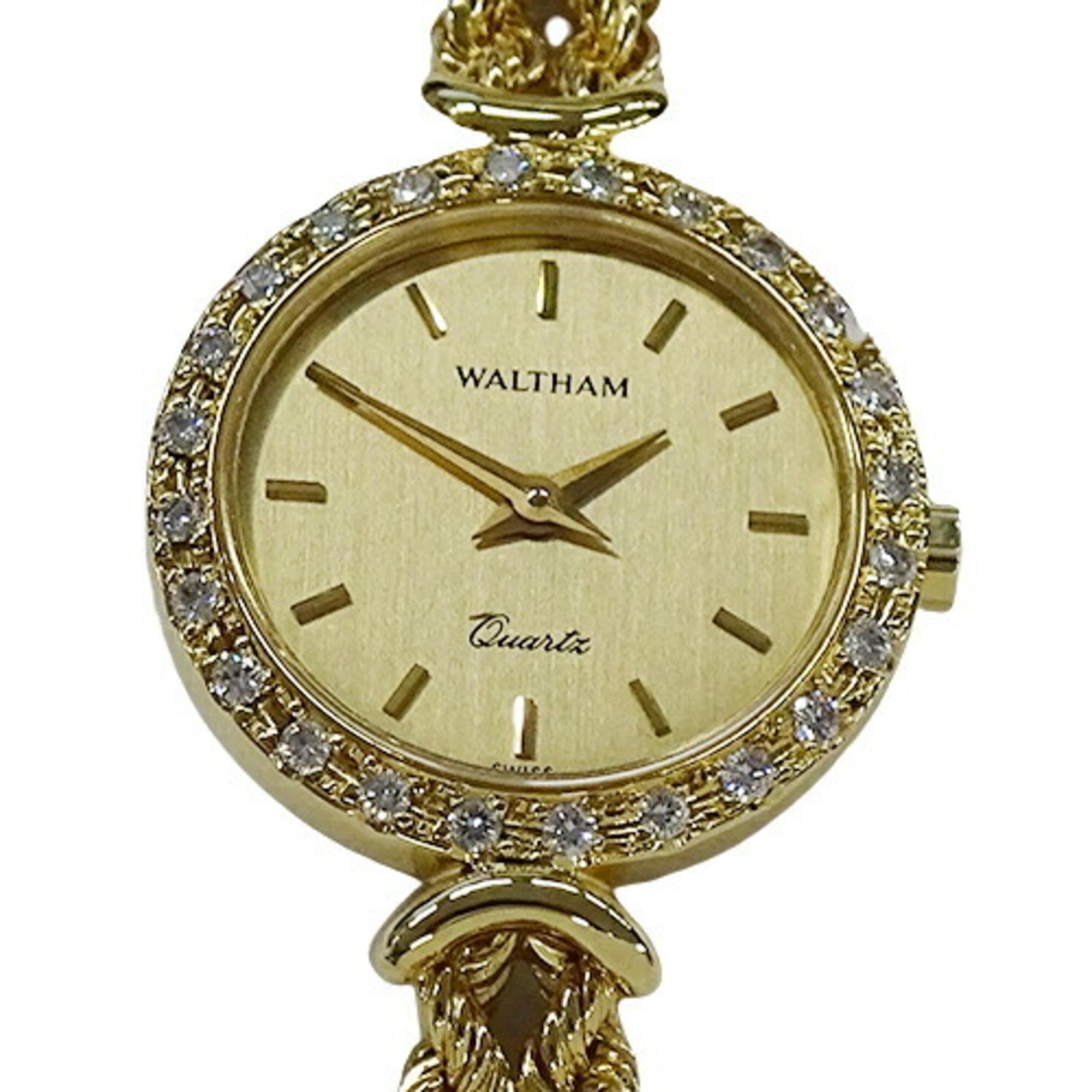 Waltham Watch Ladies Brand Diamond Quartz Qz 750Yg Pure Gold About Very well made.
