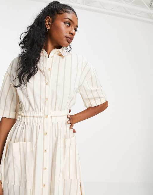 ASOS DESIGN Tall denim belted shirt dress in white Very well made.