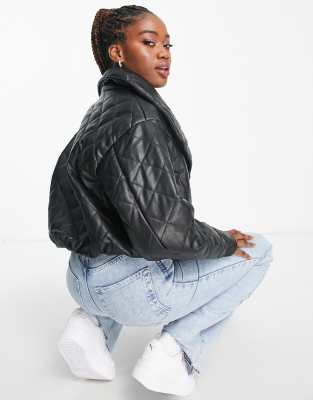 ASOS DESIGN quilted faux leather jacket in black Very well made.