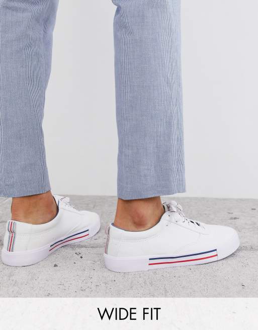 ASOS DESIGN Wide Fit lace up plimsolls in white with navy and red Very well made.