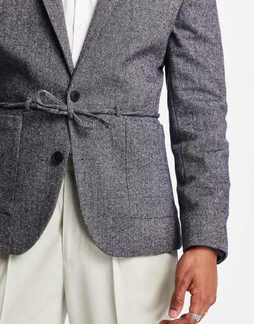 ASOS DESIGN skinny blazer in navy wool mix herringbone with belt Very well made.