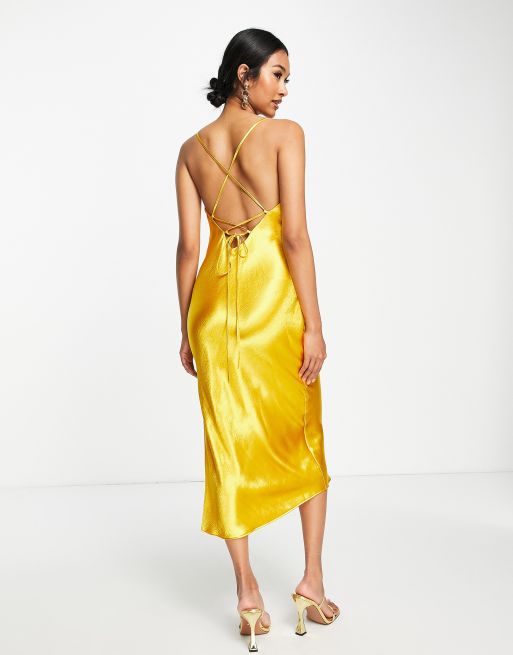 COLLUSION satin cowl neck midi dress in bright yellow ASOS Very well made.