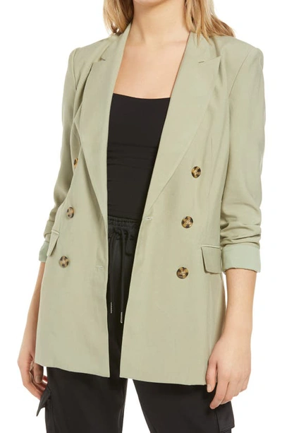 Finn Metallic Daisy Double Breasted Blazer In Olive Very well made.